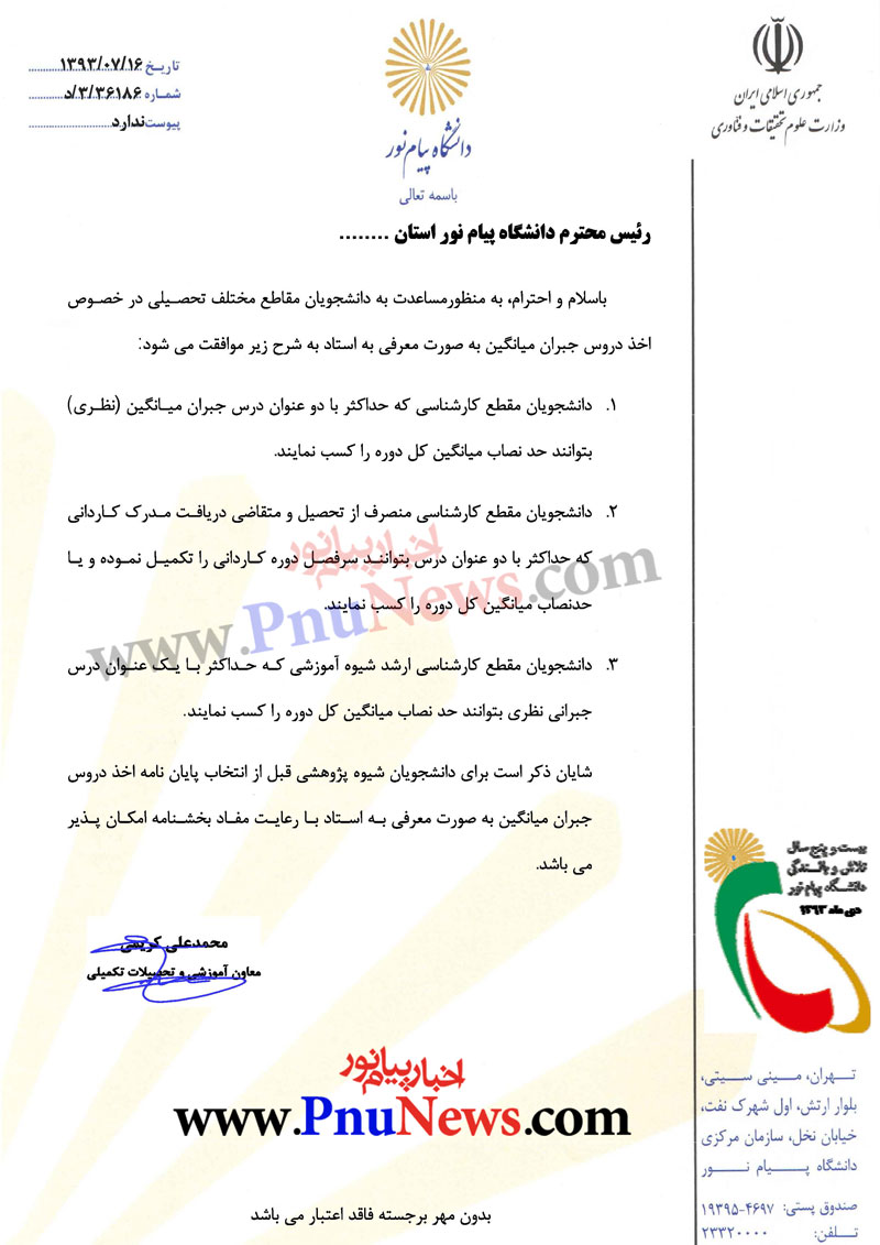 البته در مورد دانشگاه پیام نور منظورمه